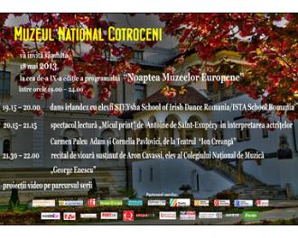 Muzeul Naţional Cotroceni vă invită sâmbată, 18 mai 2013, la cea de-a IX-a ediţie a programului european "Noaptea Muzeelor", iniţiat de Ministerul Culturii şi Comunicării din Franţa.
